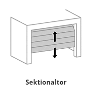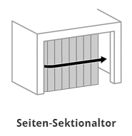 Für die meisten, sowie auch für schwierige Einbausituationen, eignet sich das Seiten-Sektionaltor. (z. B. Dachschrägen) Die Durchfahrtshöhe bleibt durch diese Variante komplett erhalten. Durch ausgeschäumten Paneele bietet das Seiten-Sektionaltor eine optimale Wärme- sowie Schalldämmung. Eine teilweise Öffnung des Tores lässt zusätzlich einen einfachen Personendurchgang zu.